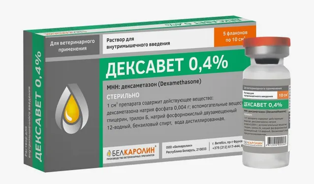 Максимальная концентрация дексаметазона в крови обнаруживается через 60 минут. Терапевтическая концентрация в сыворотке крови сохраняется в течение 30-96 часов в зависимости от вида животного. Биодоступность при внутримышечном введении составляет 100%. Биотрансформация происходит в печени и частично в фибробластах, участвующих в процессе метаболизма. Метаболиты, в основном, выводятся через печень и почки.