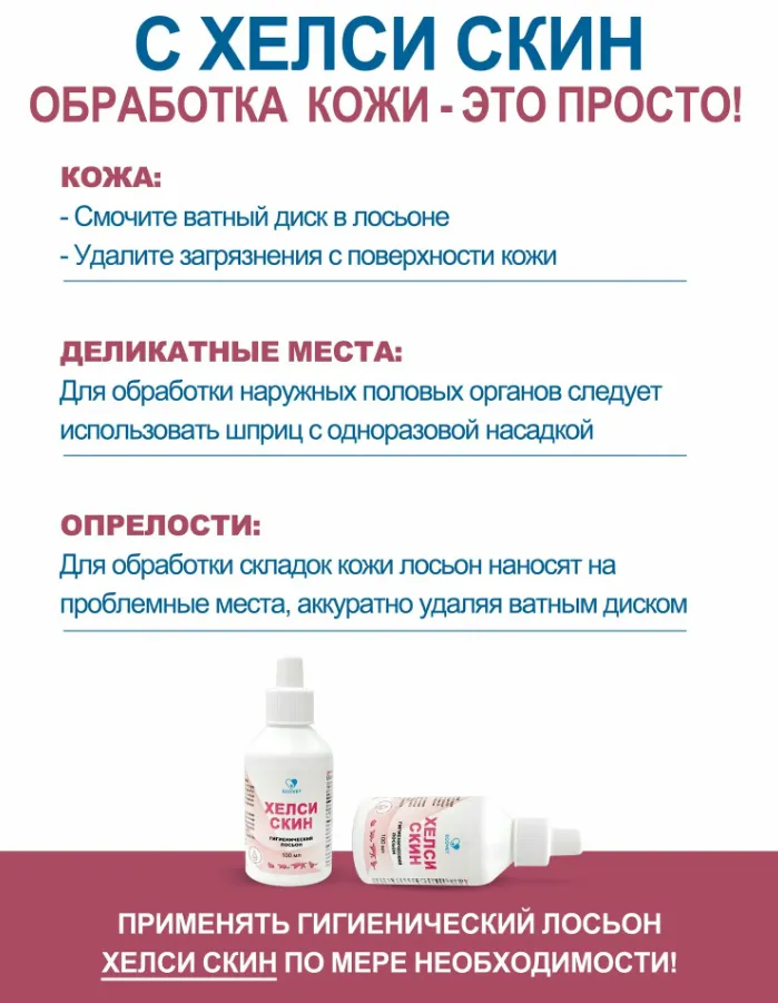 Применять гигиенический лосьон Хелси Скин по мере необходимости.