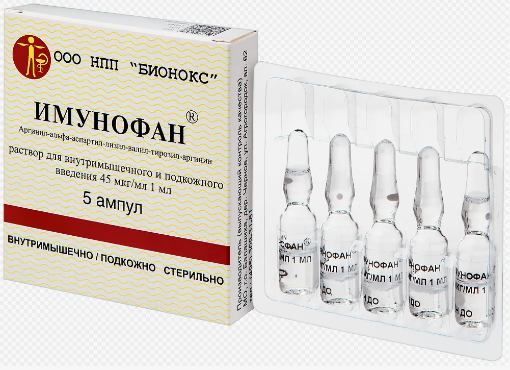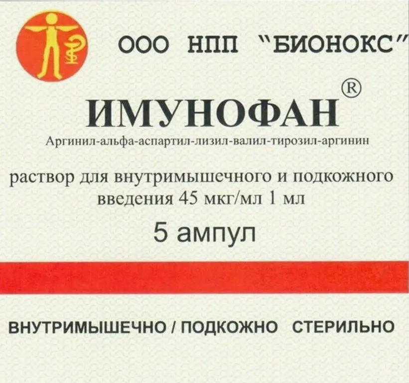 Инъекционный 0,005 % водный раствор иммунофана — синтетического гексапептида (аргинил-альфа-аспартил-лизил-валил-тирозил-аргинин) и вспомогательных веществ. По внешнему виду препарат представляет собой однородную, прозрачную, бесцветную жидкость без запаха. Выпускают в ампулах по 1 мл, которые вкладывают в картонные коробки по 5 штук