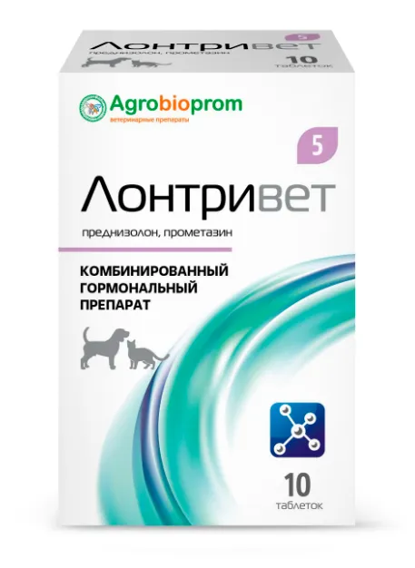 Лонтривет 5 с содержанием в 1 таблетке в качестве действующих веществ: преднизолона - 5 мг, прометазина гидрохлорида - 2,5 мг.