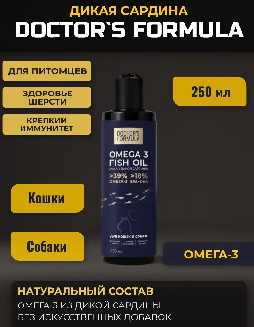 Натуральные жирные кислоты EPA и DHA вместе с витаминами A, D и E обеспечивают питомцу блестящую шерсть, здоровую кожу, крепкий иммунитет и поддерживают работу сердца.