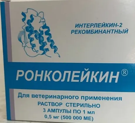 Иммуномодулятор Ронколейкин представляет собой лекарственную форму рекомбинантного интерлейкина-2 человека (рИЛ-2), выделенный и очищенный из клеток дрожжей Saccharomyces cerevisiae, солюбилизатор-додецилсульфат натрия (ДСН), стабилизатор – D-маннит и восстановитель – дитиотреитол (ДТТ). По внешнему виду препарат является прозрачной опалесцирующей жидкостью. Ронколейкин для инъекций расфасовывают в дозах: 0,5 см3 мг (500 000 МЕ) – в ампулы.