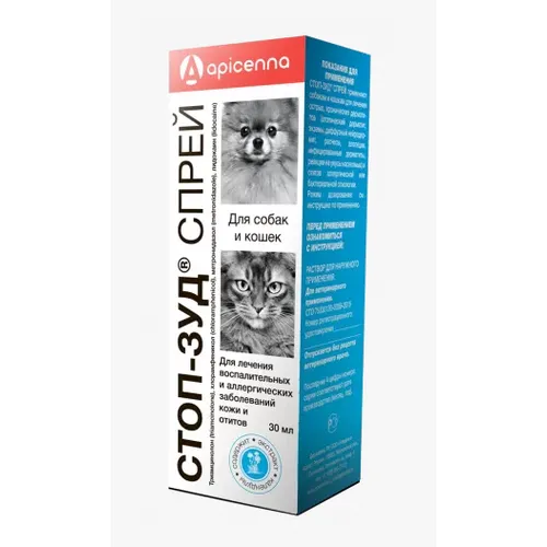 Стоп-зуд спрей — комплексный противовоспалительный препарат для лечения кожных заболеваний у животных (Международное непатентованное наименование: полькортолон или триамцинолон + левомицетин или хлорамфеникол + метронидазол + лидокаина гидрохлорид). В 1 мл препарата содержится: 0,5 мг полькортолона, 5 мг левомицетина, 1 мг метронидазола, 50 мг лидокаина гидрохлорида, экстракт календулы, диметилсульфоксид и вспомогательные компоненты. По внешнему виду представляет собой прозрачную, слегка опалесцирующую жидкость светло-желтого цвета, со слабым специфическим запахом. Расфасовывают по 30 мл в полимерные флаконы с распылителем, которые упаковывают в картонные коробки.
