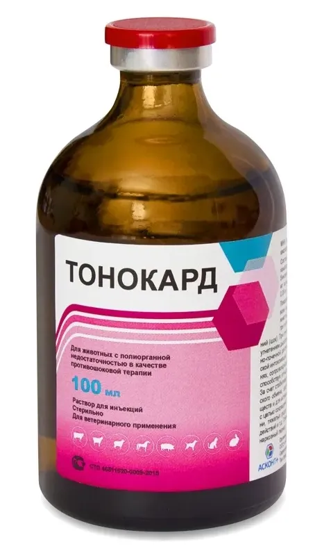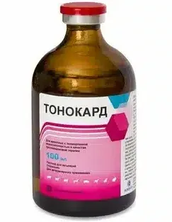 Возможна однократная проходящая рвота при струйном внутривенном введении. Внутримышечное и подкожное струйное введение вызывает болевую реакцию. При повышенной индивидуальной чувствительности животного к компонентам препарата и появлении признаков аллергии, применение Тонокарда прекращают и животному назначают антигистаминные лекарственные препараты и средства симптоматической терапии.