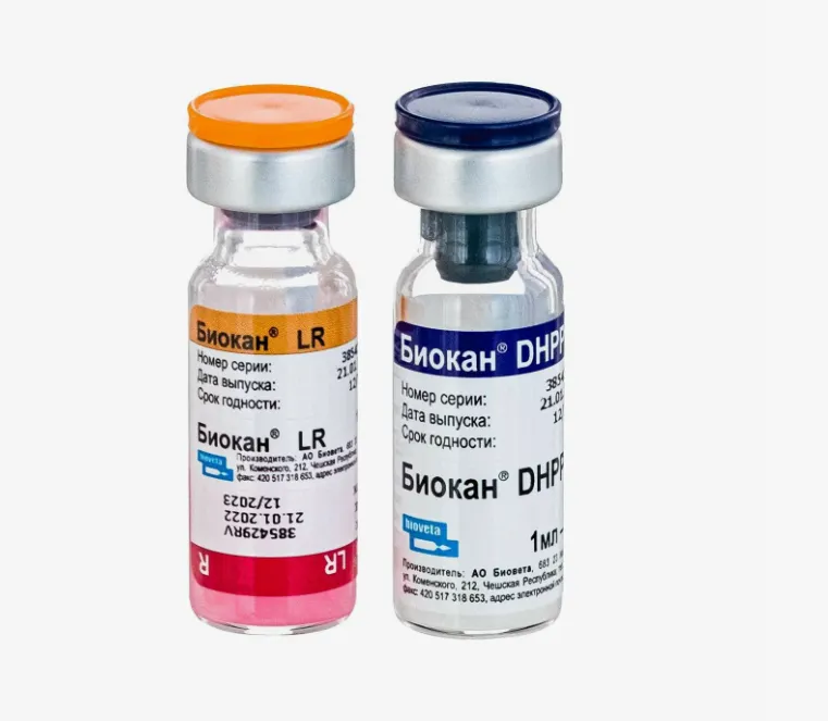 Вакцина Биокан DHPPi+LR может использована отдельно или одновременно с другими вакцинами Биокан С, Биокан М Плюс, Биокан В.
