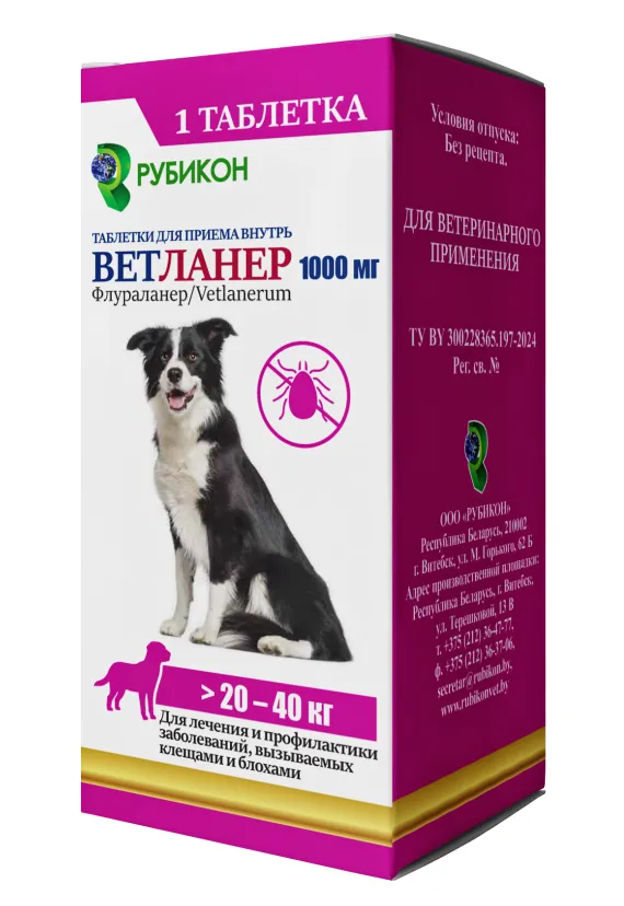 Ветланер - таблетка для приёма внутрь для собак - аналог Бравекто от белорусского производителя Рубикон.
